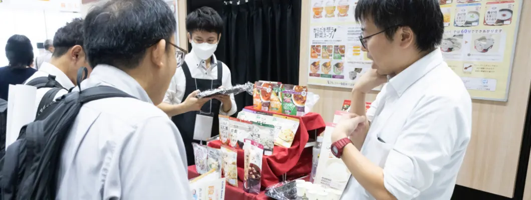 展示会場内に災害食・保存食の試食・試飲ができるスペースを設置し、ブース外でのPR機会を提供します。